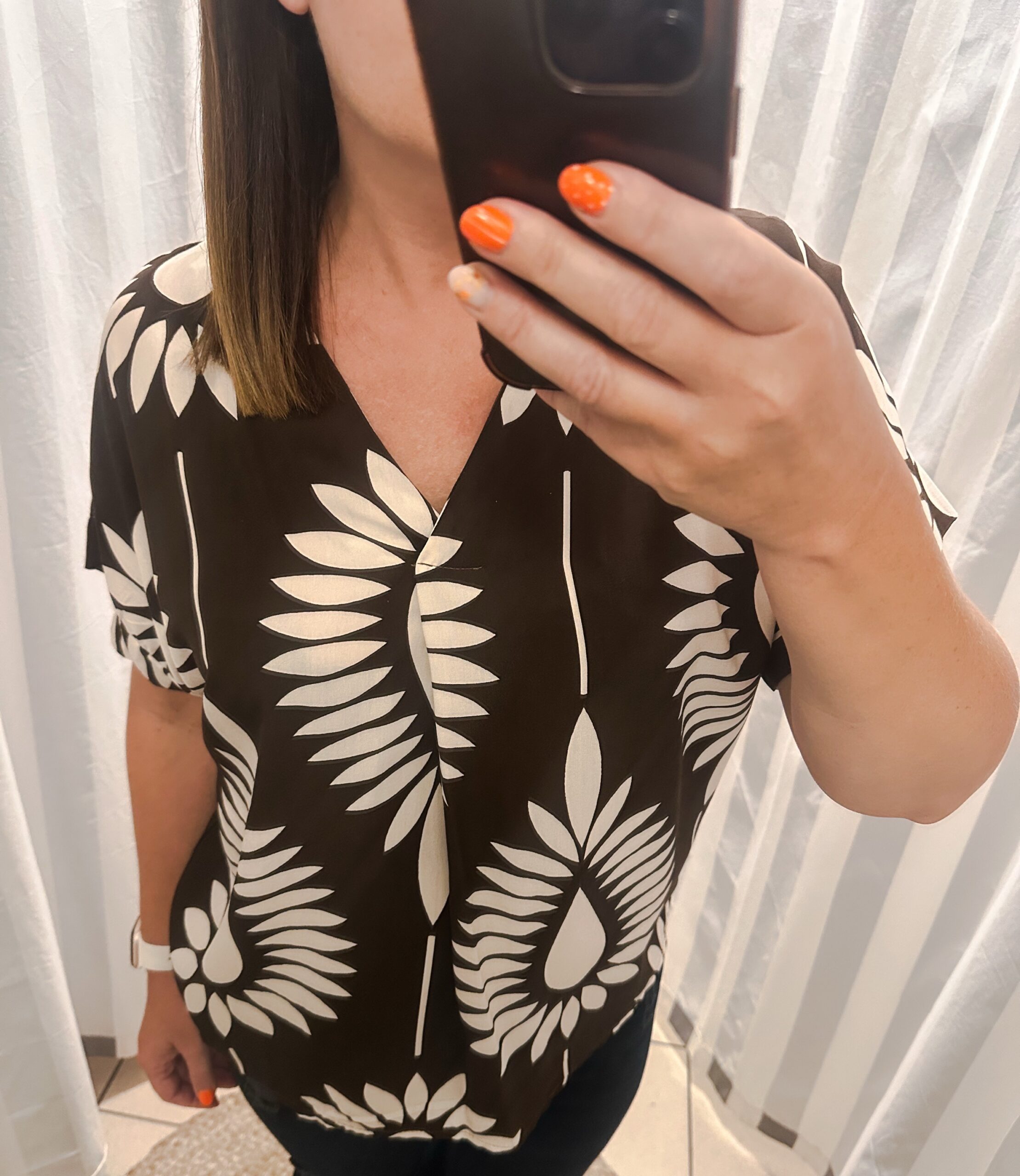 Damska bluzka z krótkim rękawem i obniżoną linią ramion. Dekolt w serek. Roślinny motyw. Ciekawy element damskiej szafy, który ożywi Twoją garderobę. Idealne uzupełnienie jesiennych stylizacji na co dzień.
