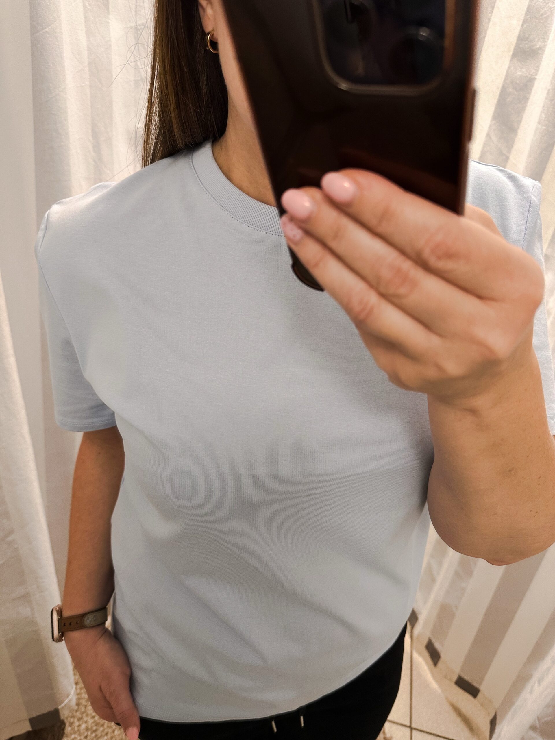 T-shirt Lumina to klasyczny model, który idealnie wpisze się w każdą stylizację. To propozycja dla kobiet, które cenią minimalizm, wygodę i wysoka jakość materiałów. Jest miękki, przewiewny i świetnie dopasowuje się do sylwetki, będąc doskonała bazą do wielu stylizacji.
